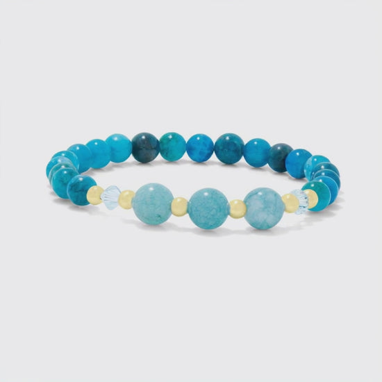 Bright. Curious. Magnetic. The Gemini Lucky Zodiac Trio Crystal Bracelet pairs Blue Apatite and Aquamarine to channel Gemini’s natural brilliance, communication skills, and adventurous spirit.