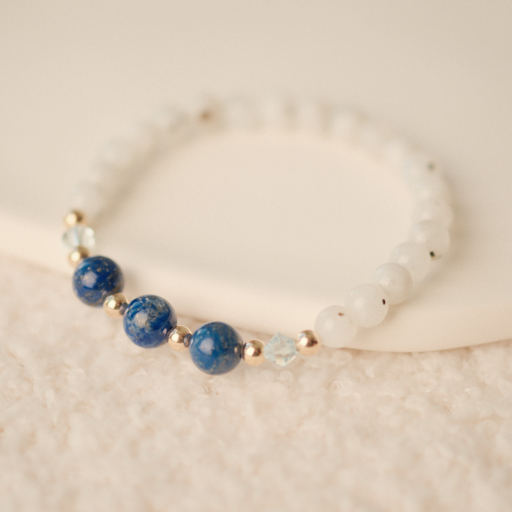 Intuitive. Nurturing. Protective. The Cancer Lucky Zodiac Trio Crystal Bracelet combines the mystical glow of Moonstone with the wisdom of Lapis Lazuli to amplify Cancer’s emotional depth, intuition, and inner strength.