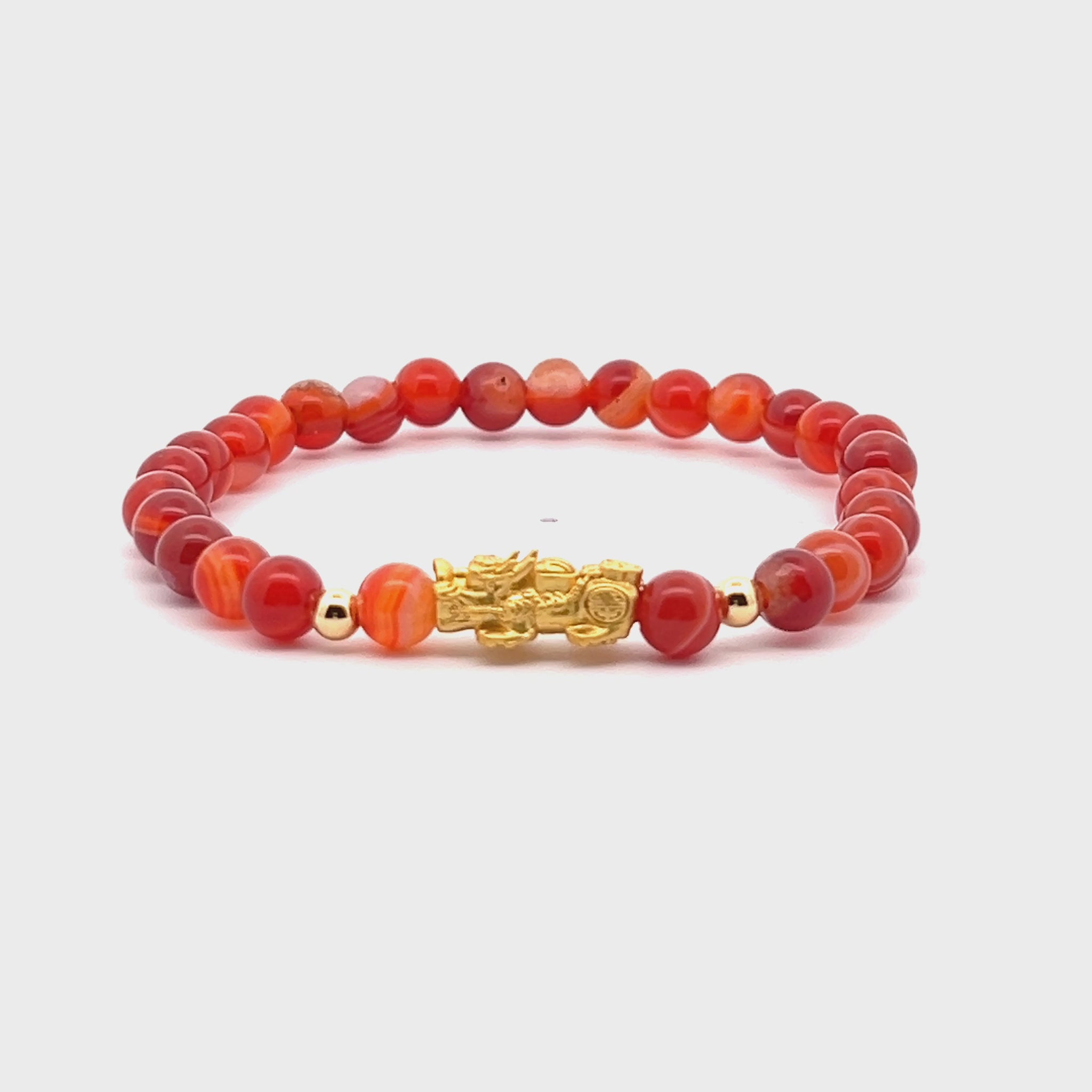 Carnelian Unlimited Prosperity 18K Gold Vermeil Pixiu Feng Shui Bracelet