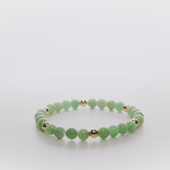This Elevated Abundance Bracelet with REAL Gold Beads and Emerald is the perfect example of modern luxury. The luxurious gold beads and eye-catching emerald combine for a timeless accessory that is sure to enhance any look. Enjoy the luster of this magnificent piece for years to come. Between every 4 Emerald bead is one 5mm 10k gold bead, making this a never before seen unique design.