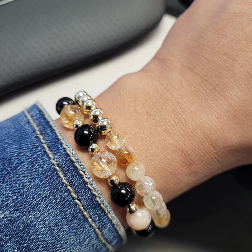 Fortune and Protection Black Obsidian and Citrine 18k Gold Vermeil Bracelet