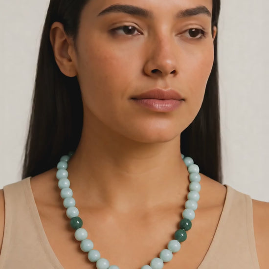 Exquisitely crafted Grade A jade beads strung on a premium necklace, finished with authentic 14k gold elements. Each jade stone exhibits superior clarity, color consistency, and natural luster characteristic of the highest quality jade. This investment piece combines Eastern symbolism of prosperity with timeless elegance, suitable for both special occasions and everyday luxury wear.