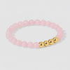 Romance your soul with this classic and timeless Rose Quartz beaded bracelet. Adorned with 5 10k Pure Gold Beads, this bracelet symbolizes divine love & healing that is sure to sweep any woman off their feet. Rose quartz is known for its honing in of unconditional love and peace, while the pure gold beads take the power of the crystals to another level. Its properties are sure to open your heart, create harmony in relationships and teach us how to give and receive love. Unwrap these metaphysical wonders with our beautiful rose quartz bracelet that will transport you into a world where love radiates from within.