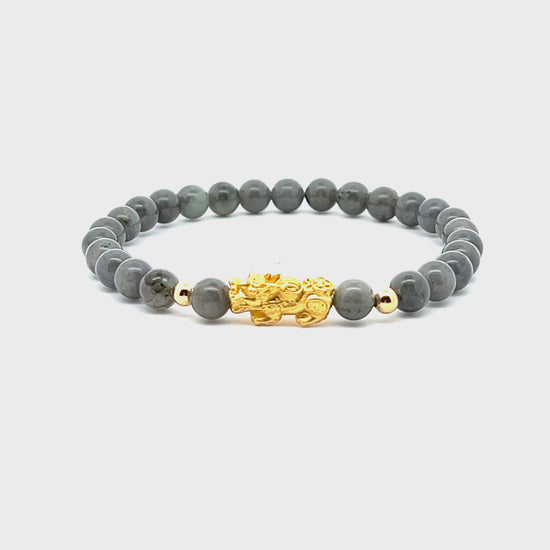 Labradorite Unlimited Prosperity 18K Gold Vermeil Pixiu Feng Shui Bracelet