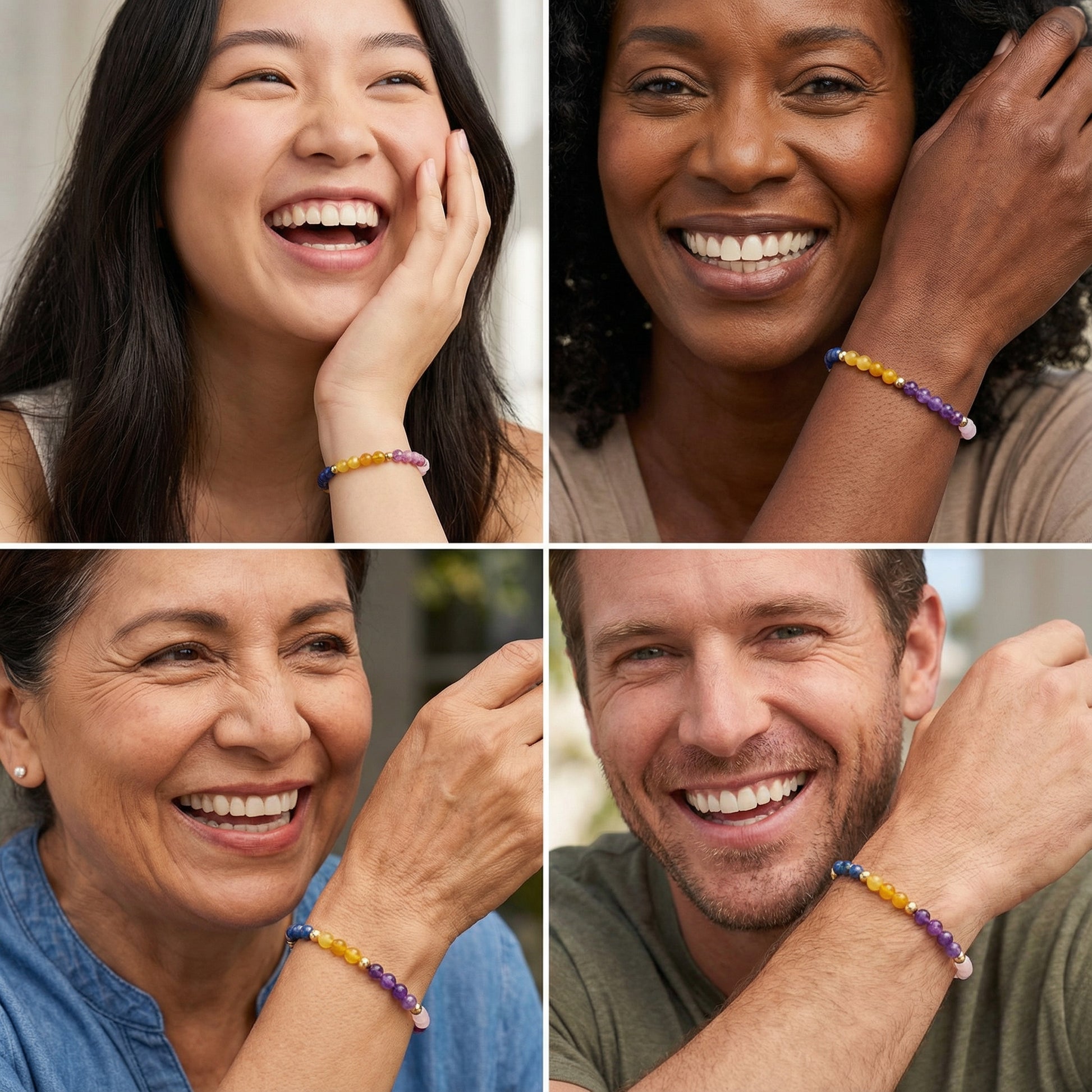 Harness the transformative energy of 11:11 with this meticulously crafted blessing bracelet, designed to amplify intentions as you step into the new year. Each 4mm bead has been thoughtfully selected for its energetic properties: lapis lazuli for clarity and truth, amethyst for spiritual awareness, ruby for vitality and passion, rose quartz for compassion and healing, and yellow jade for prosperity and joy. Accented with genuine gold elements, this bracelet combines ancient crystal wisdom with refined craftsmanship. Whether worn as a daily reminder of your goals or a meaningful gift, it serves as a tangible anchor for your aspirations and personal growth throughout the year ahead.