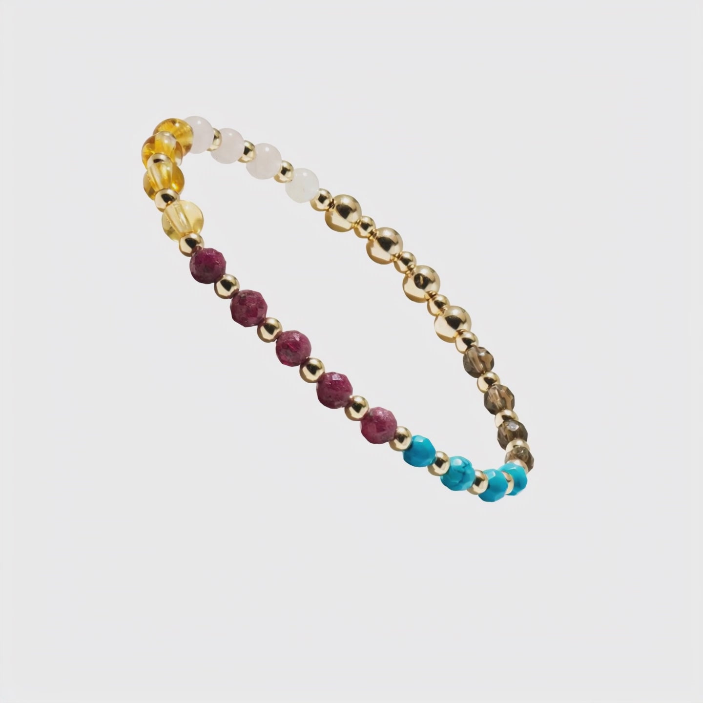 Experience enhanced spiritual energy with the Multiple Blessing Akshaya Tritiya 2025 Spiritual Bracelet. Featuring ruby, turquoise, citrine, rose quartz, and smoky quartz, this bracelet offers a diverse range of benefits for your overall well-being. Enhance your spiritual journey and embrace the positive energies of these powerful gemstones.