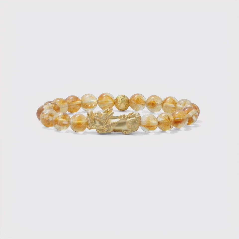 Natural Citrine Fortune 18k Gold Vermeil Pixiu Feng Shui Bracelet