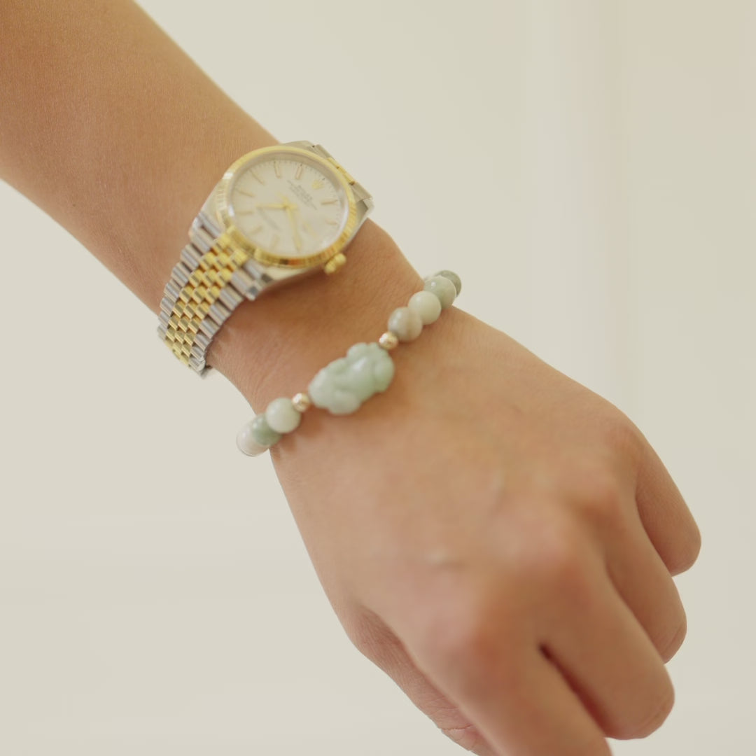 Green Jade Pixiu Bracelet With REAL Gold