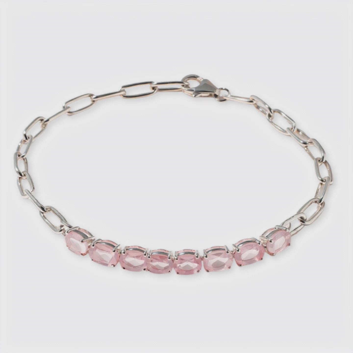 Rose Quartz Sterling Silver Paperclip Sterling Silver Soulmate Bracelet