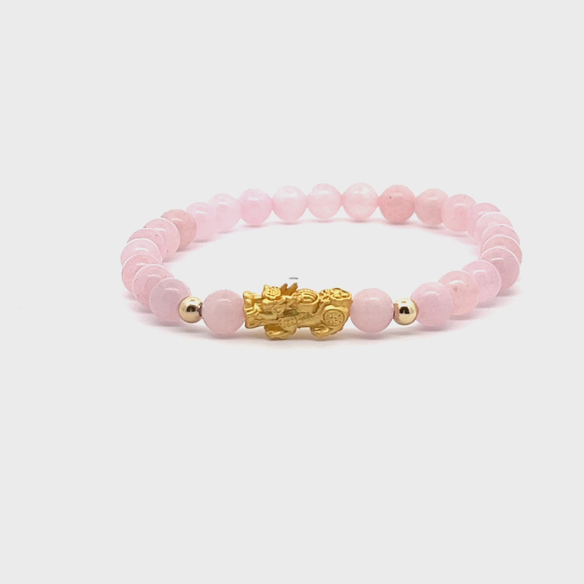 Rose Quartz Unlimited Prosperity 18K Gold Vermeil Pixiu Feng Shui Bracelet