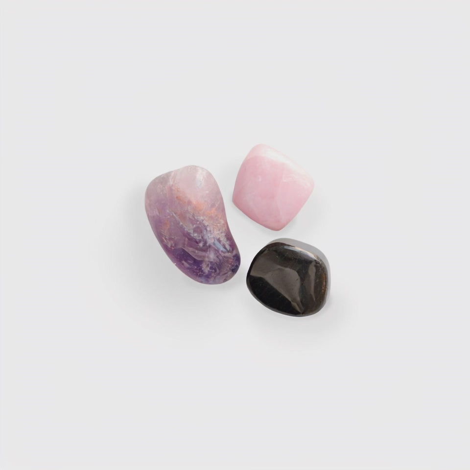 Sal's Everyday Gemstone Essential features a curated blend of rose quartz, amethyst, and black obsidian, each chosen for their distinctive energetic properties. Rose quartz promotes emotional healing and self-love, amethyst supports mental clarity and calmness, while black obsidian offers grounding and protection. This thoughtfully combined set provides a balanced synergy to enhance daily wellness practices with expert care. Ideal for integrating into meditation, mindfulness, or as a meaningful addition to your personal space.