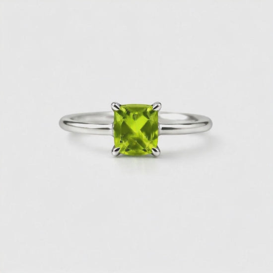 Harness the vibrant energy of natural green peridot with this timeless sterling silver ring. The square-cut stone showcases the crystal's distinctive lime-green hues, believed to promote renewal and positive transformation. Crafted in genuine sterling silver, this classic design offers versatile elegance for daily wear or meaningful gifting. A grounding piece that bridges natural beauty with intentional living.