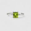 Square Natural Green Peridot Sterling Silver Classic Ring