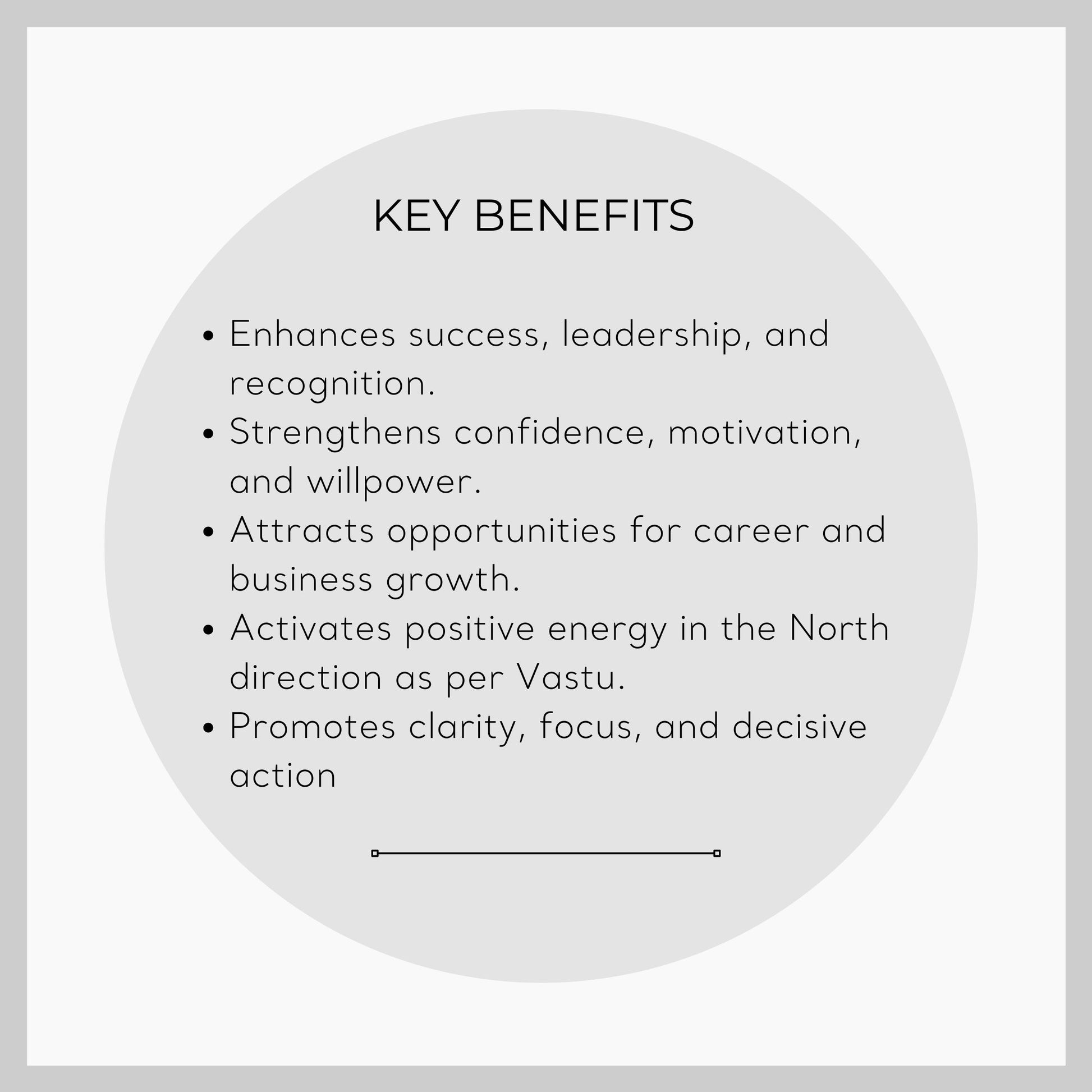 Harness the radiant power of the Sun with the Surya Sun Remedy for Success, a sacred medallion designed to align your home with the life-giving energy of Surya, the Vedic Sun God. In Vastu Shastra, the Sun symbolizes leadership, vitality, confidence, and achievement. When placed on the North wall of your home or workspace, this remedy activates the flow of success, recognition, and personal power into your life.