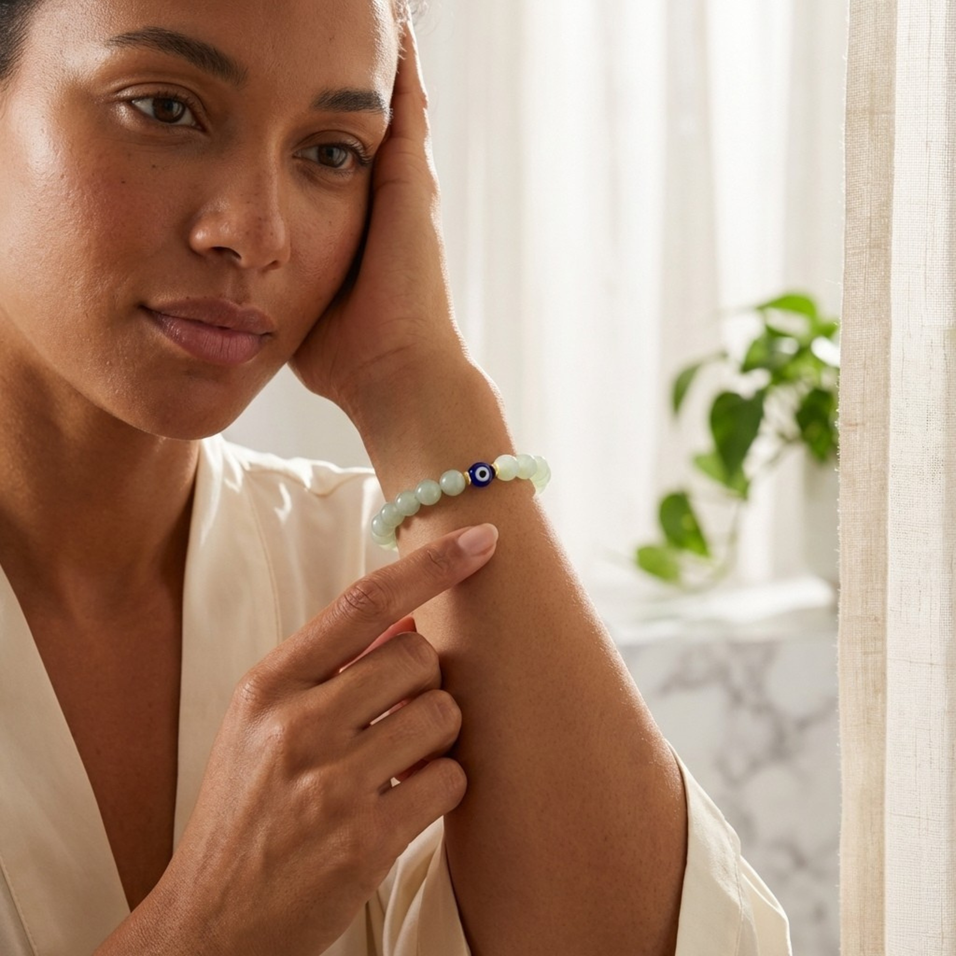 Taurus Evil Eye Jade Crystal Protection Bracelet - A harmonious blend of protective evil eye symbolism and grounding jade crystal, designed specifically for Taurus energy.