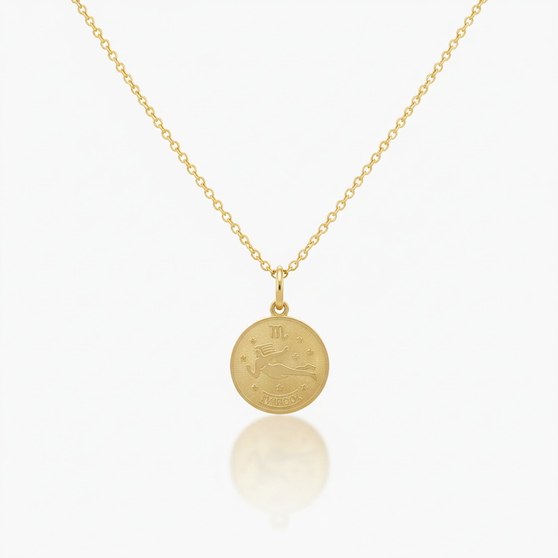 Embrace your celestial identity with this beautiful Virgo zodiac medallion necklace. A stunning large zodiac pendant hangs gracefully from a delicate gold fill satellite style chain, creating an elegant statement piece that celebrates your astrological sign.